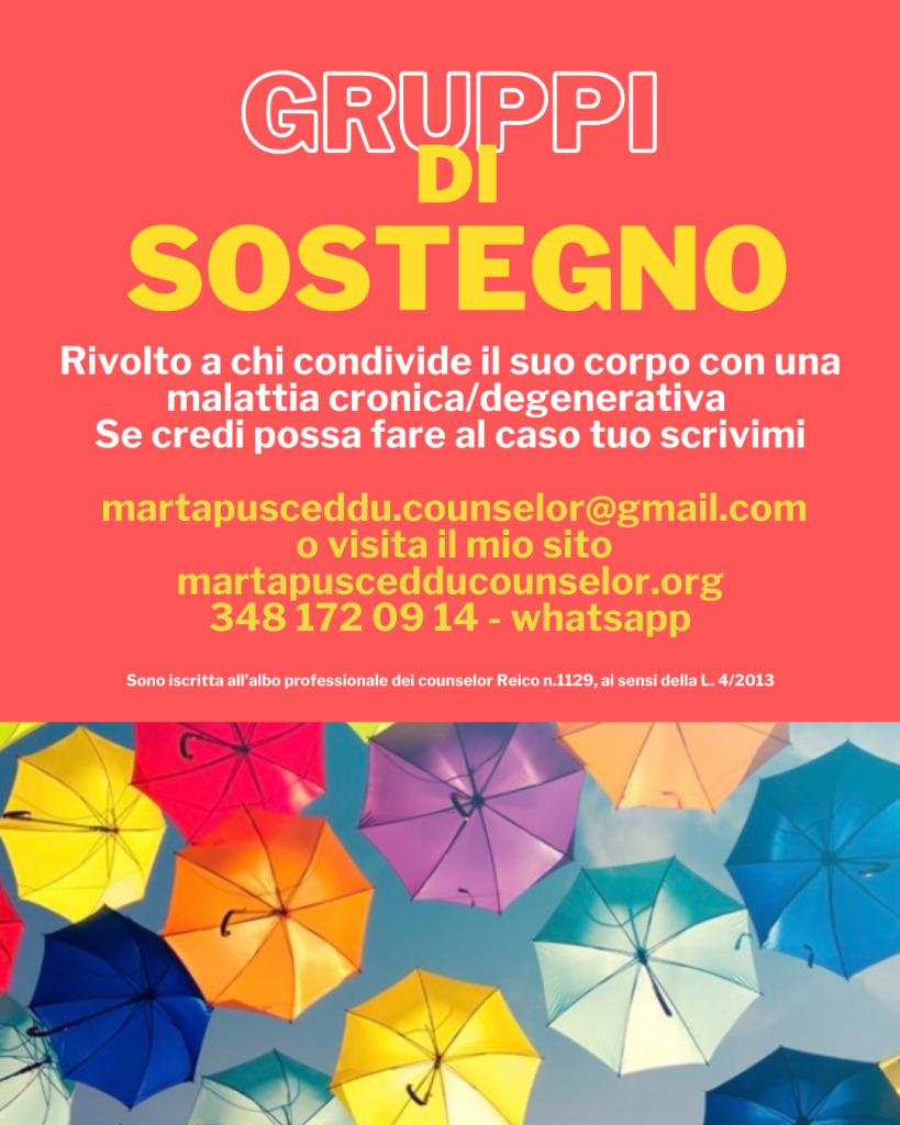 Da oggi, tra i miei percorsi, troverete anche i Gruppi di Sostegno, dedicati a chi condivide l´esistenza con una malattia cronica o degenerativa.